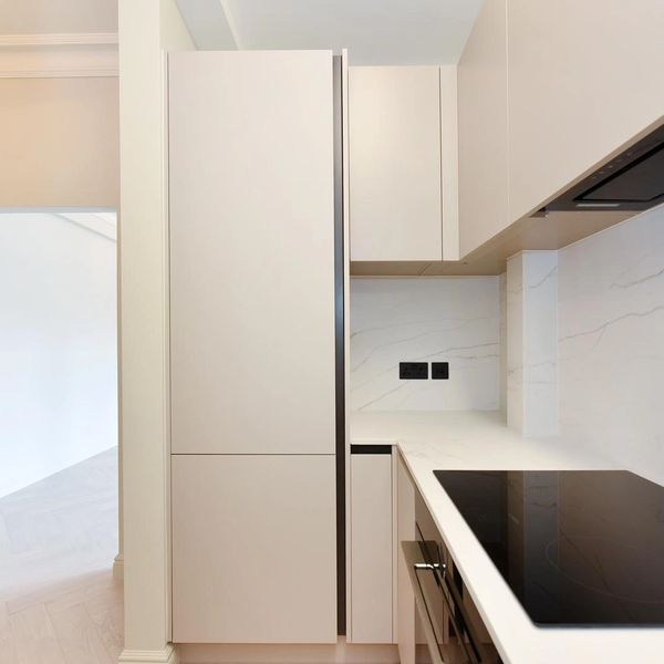 Central to the success of the project was close collaboration with the property developer. Through a detailed and considered design process, his vision of a refined, elegant residence was brought to life. The resulting interior is modern, fresh, and luxurious, yet remains in harmony with the heritage and architectural character of the historic building — a sophisticated urban retreat that balances timeless craftsmanship with contemporary comfort.